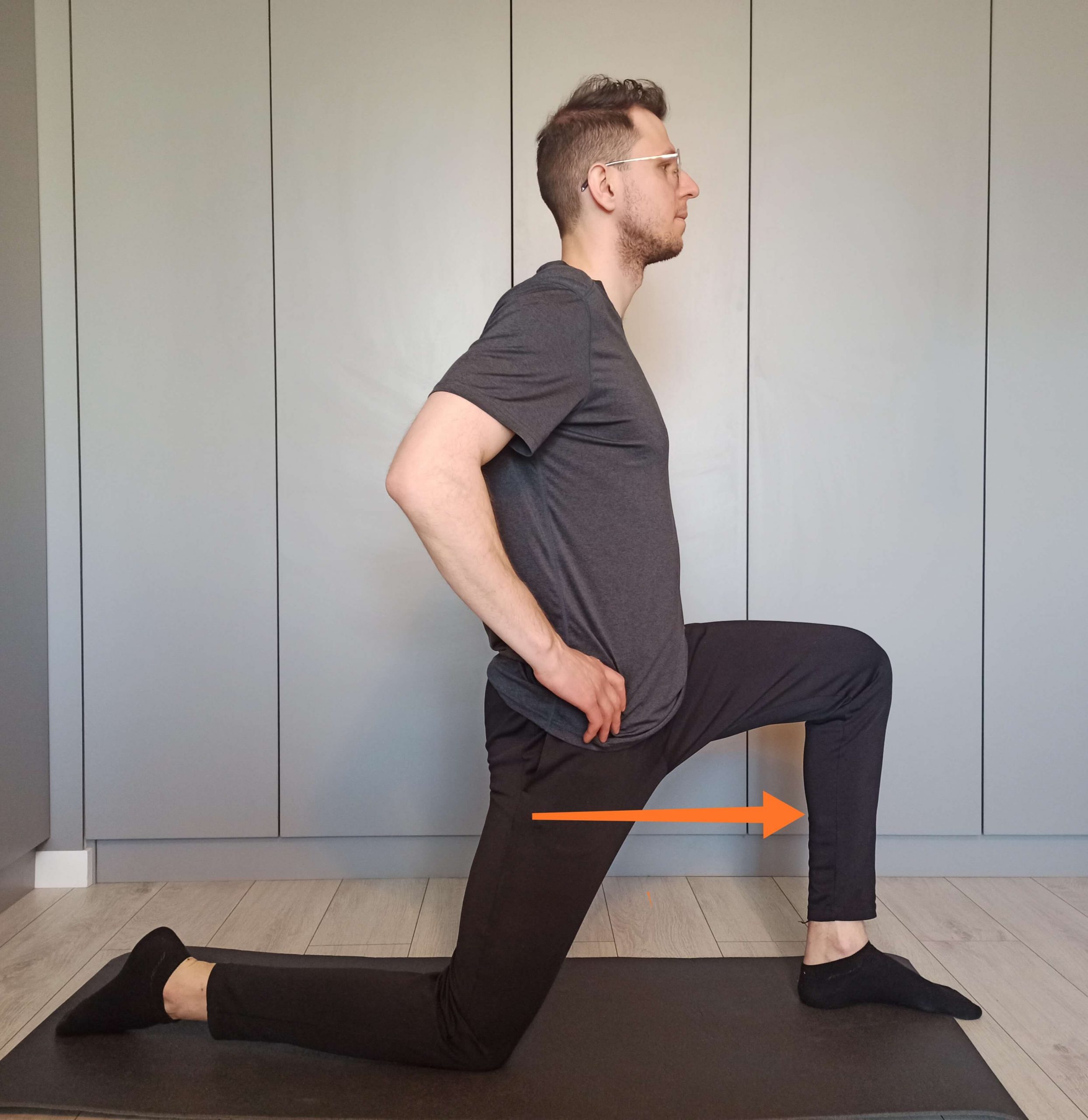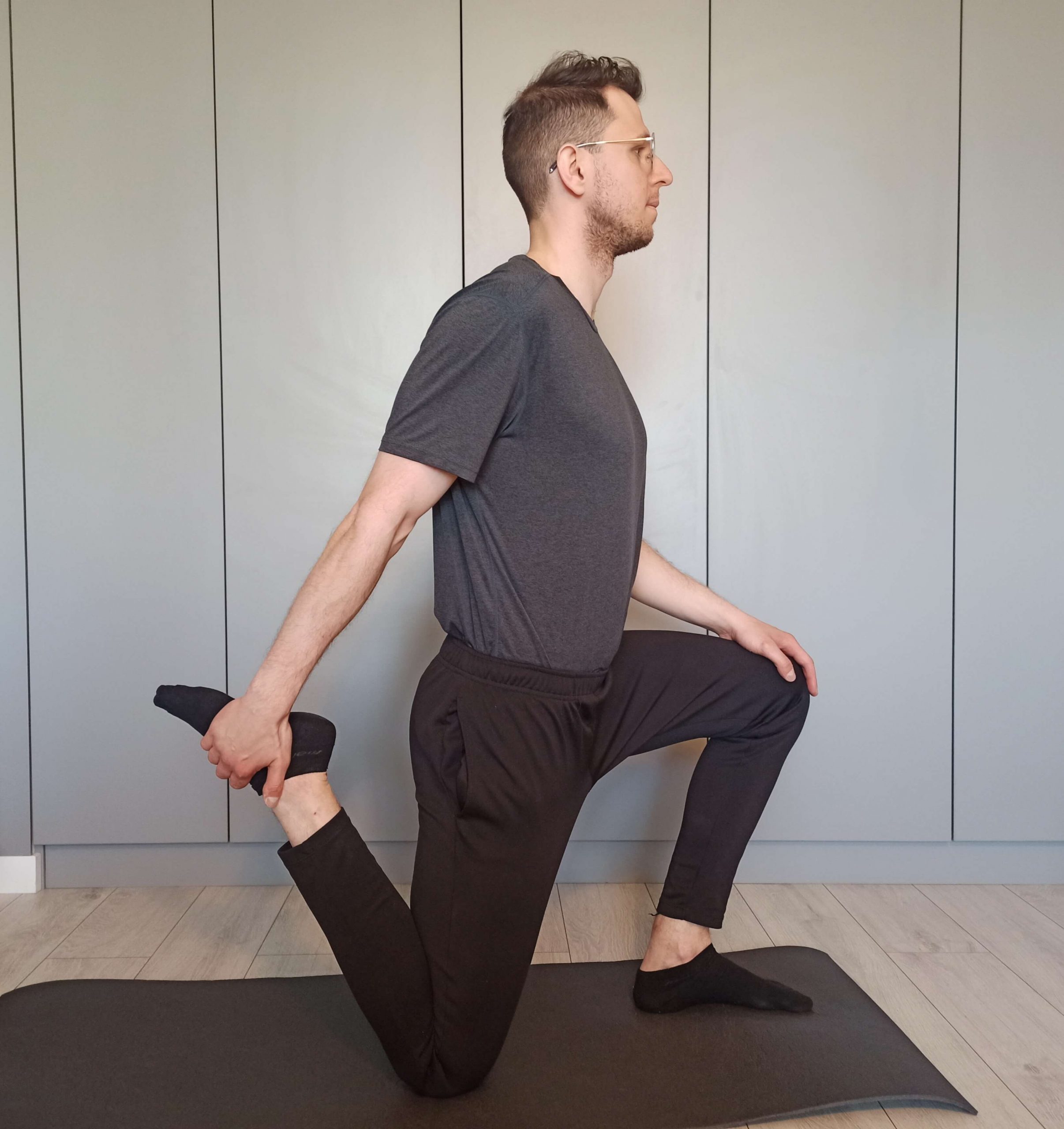 Często pokazuje go w swoim gabinecie. Skupia się na rozciąganiu ud oraz pośladków. Przydatny w przypadku bólu odcinka lędźwiowego lub problemów występujących w kończynach dolnych, a także dla osób aktywnych fizycznie i tych spędzających sporo czasu w pozycji siedzącej. Można go stosować także profilaktycznie!